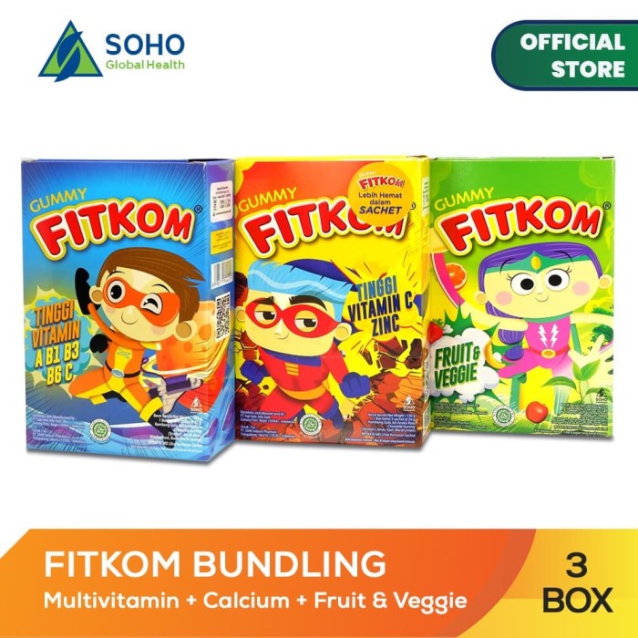 Dengan usia lebih dari 70 tahun di indonesia, kualitas produknya tentu sudah sangat terjamin, termasuk untuk fitkom yang dikenal sebagai top brand bagi multivitamin anak.. Fitkom gummy multivitamin 48 g rp16.900 vidoran … Fitkom gummy calcium untuk melengkapi kebutuhan kasium anak. Fitkom gummy fruit & veggie diproduksi oleh perusahaan ternama di bidang farmasi, yatu soho. Merk vitamin anak yang bagus ini bermanfaat untuk mendukung pertumbuhan dan pencernaan. Fitkom gummy fruit & veggie multivitamin 60 gr:. Fitkom gummy fruit and veggie dengan 6 ekstrak sayur dan 5 ekstrak buah untuk melengkapi kebutuhan nutrisi si kecil.